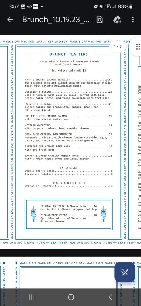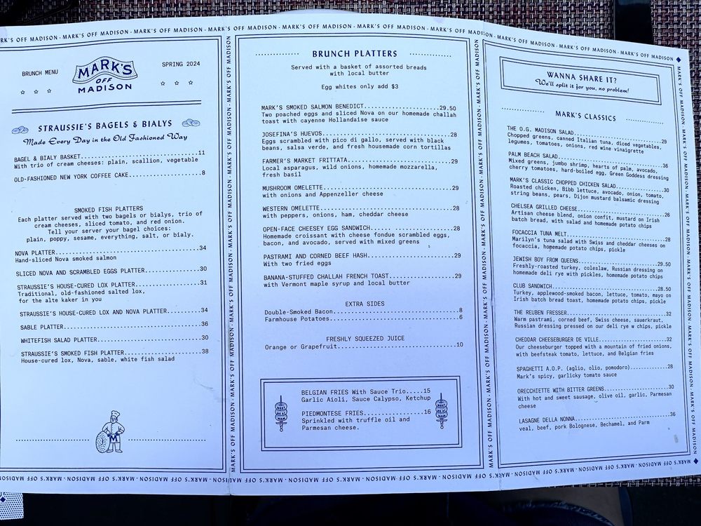 Mark's Off Madison is a bustling restaurant located in the heart of New York City. Known for its cozy atmosphere and friendly staff, Mark's Off Madison offers a wide range of amenities such as outdoor seating, waiter service, and a full bar. The menu features a mix of traditional favorites and unique dishes, with options for vegans and those with dietary restrictions. Customers rave about the lasagna and egg sandwich, while others enjoy the lobster pasta and homemade pumpkin tortelloni. The portions are generous, and the flavors are top-notch. Overall, Mark's Off Madison is a must-visit for those looking for a delicious meal in a welcoming environment.